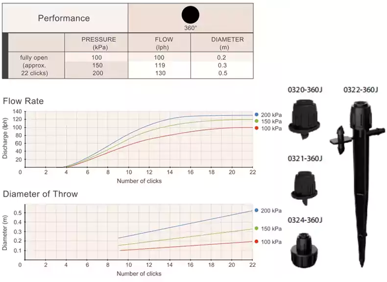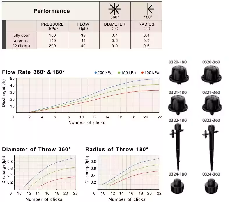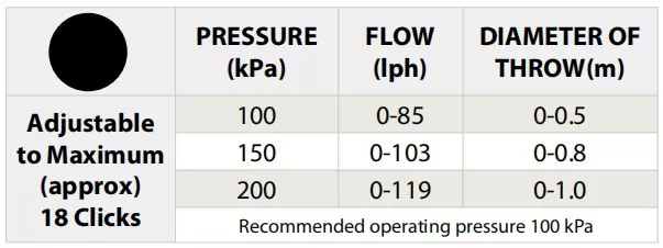 Putaran penutup Mini Bubbla membolehkan pelarasan serentak kadar aliran dan diameter lontaran. Penyembur Twista aliran boleh laras ini corak payung seragam yang menyapu air dengan lembut ke zon akar tumbuhan.