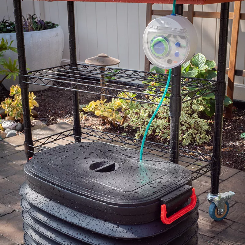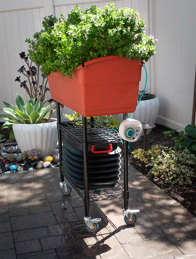 Selesaikan masalah sumber air anda, kit penyiraman Smart Watering Aquamatic Drip menampilkan reka bentuk badan baldi boleh tarik yang ringkas dan elegan untuk penyimpanan yang mudah. Apabila tangki air dibuka, ia boleh memuatkan sehingga 37 liter. Penutup tangki yang tertutup akan menjauhkan nyamuk.