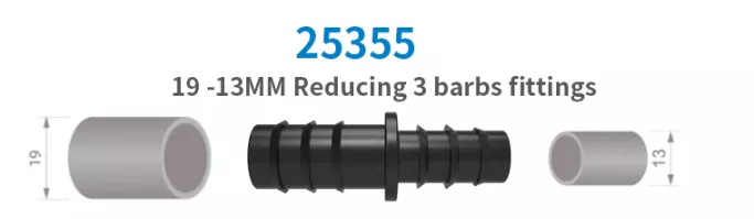 1、Tiga Kelengkapan Barbs hsa tiga barbs, ia boleh bersambung dengan ketat ke paip PE/PVC tanpa memerlukan kelengkapan tambahan.