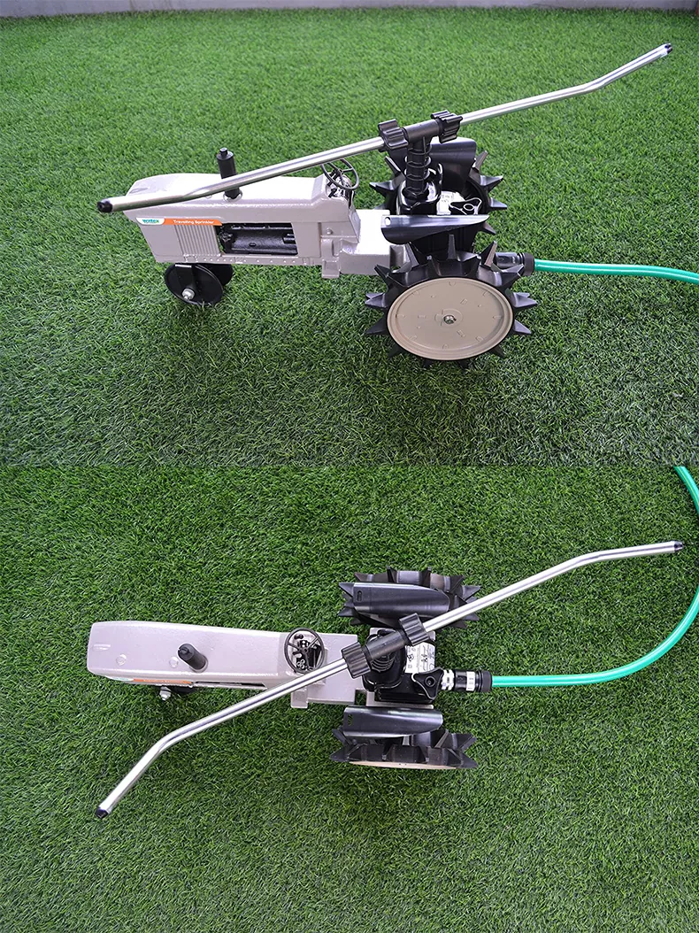 Selamat datang untuk memilih Perenjis Perjalanan yang disediakan oleh Watex. Produk ini mempunyai reka bentuk gaya traktor yang unik dan merupakan kereta air bergerak sendiri yang menggunakan tekanan air untuk menggerakkan pergerakannya, membolehkan pengairan rumput yang cekap.